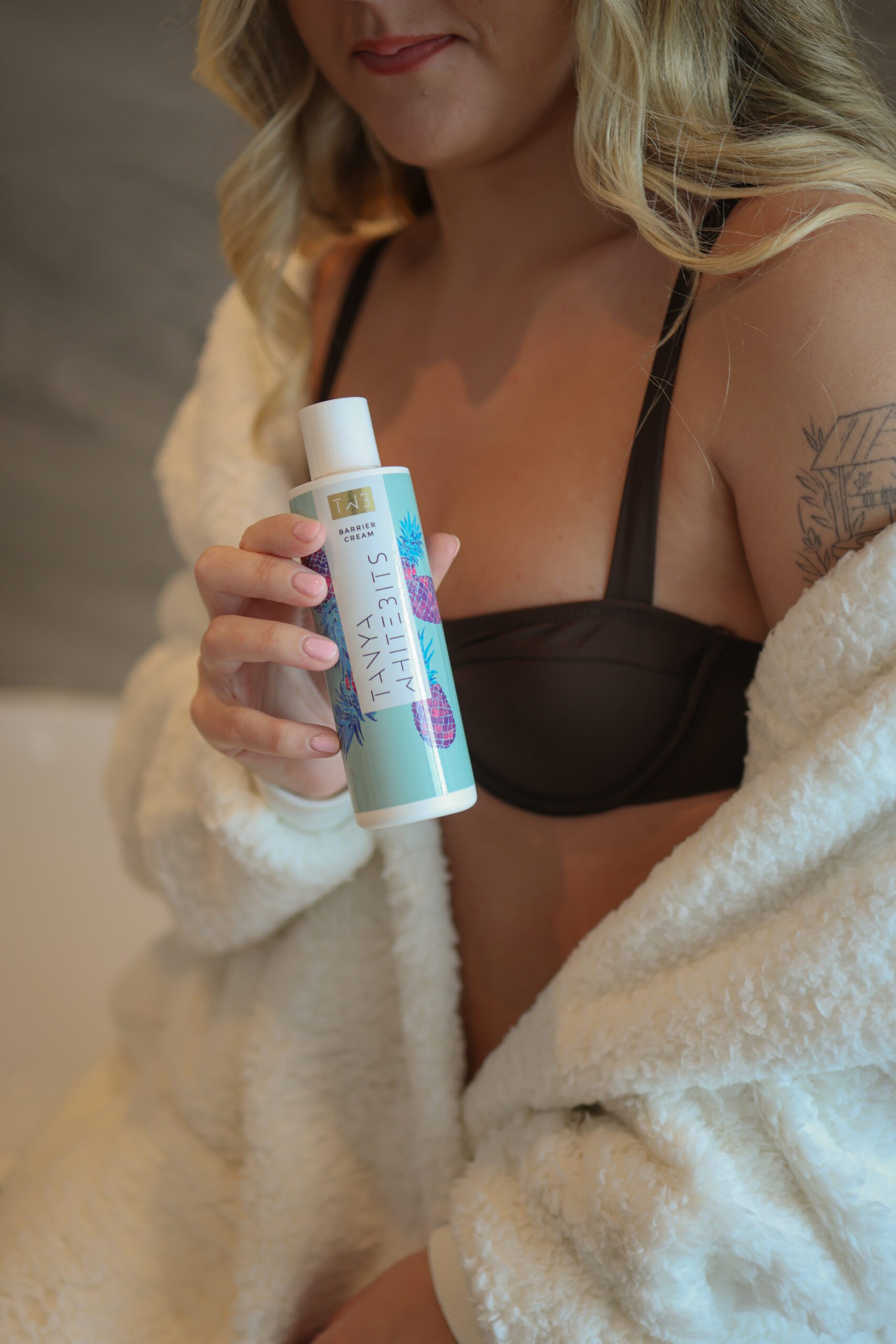 TANYA WHITEBITS Barrier Cream prevents tanning on those areas you wish to protect. It forms an invisible barrier for TANYA WHITEBITS products, and moisturises and protects the skin. Our Barrier Cream can be applied to dry areas before fake tanning including elbows, knees, palms of hands and feet. You can also apply a small drop to finger and toe nails to prevent staining. TANYA WHITEBITS Barrier Cream is non-greasy and fragrance free.